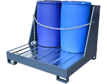 - Spill containment pallets help organise your drum storage.