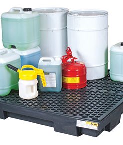 Spill pallets, also known as a spill deck are designed to safely store 20L and 60L drums or batteries, capturing leaks, drips and spills. These low-profile containment bunds are also known as drum bund,