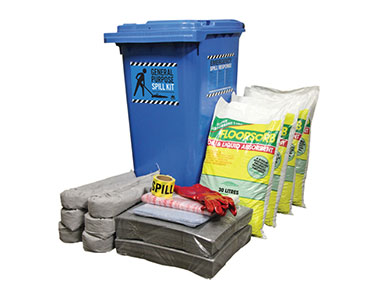 - Spill kit is supplied in a blue 240 litre wheelie bin. (A choice of colour is also available to suit individual requirements.)